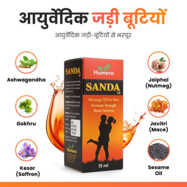 Humera Herbal Sanda Gold Oil for Men – Ayurvedic Massage Oil for Energy, Vitality & Body Strength – 15ml